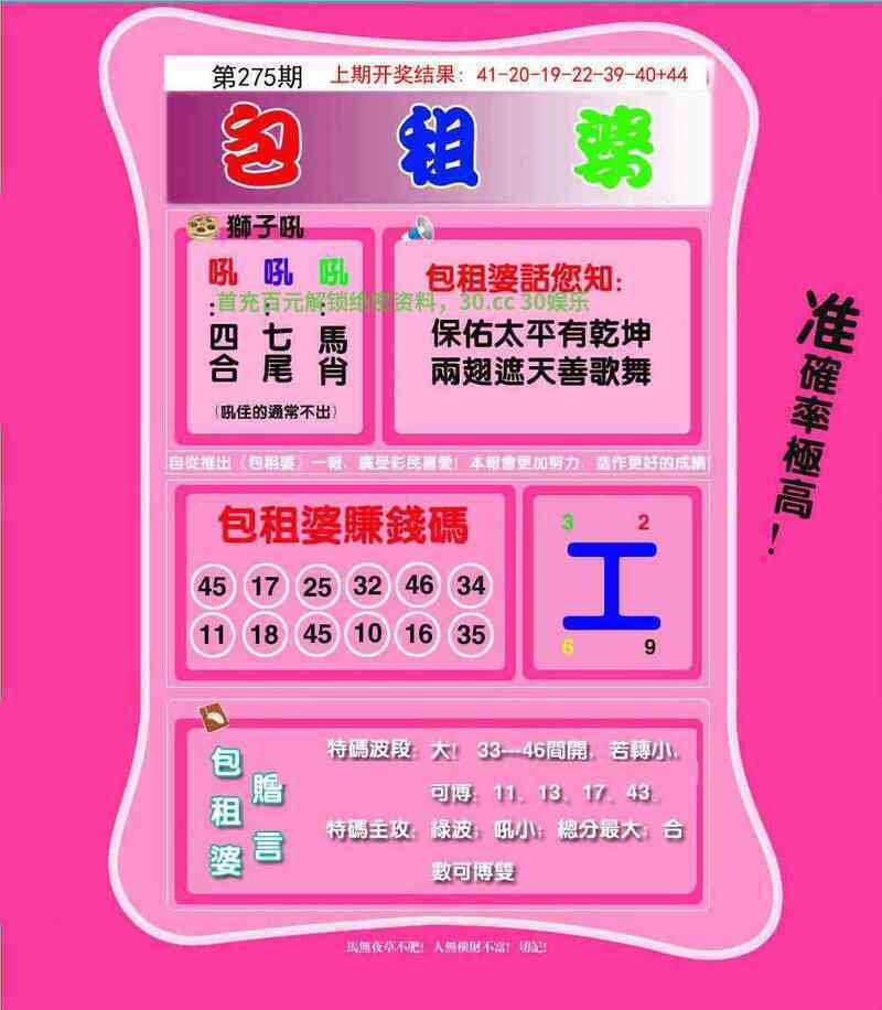 275期:九肖猴虎牛兔狗猪鼠羊马开:鸡45